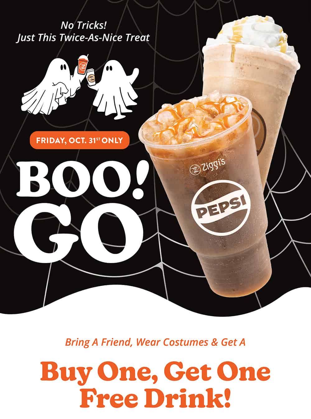Pair up with a buddy to celebrate Halloween at Ziggi’s Coffee!