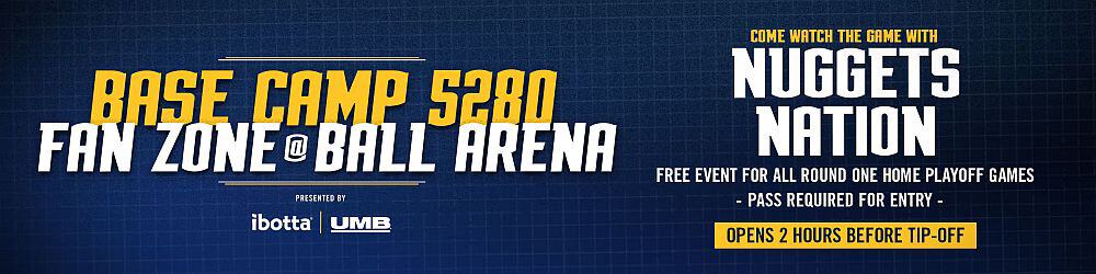 For Game 1 of the Nuggets-Timberwolves series Saturday, April 18, 2026, Base Camp 5280 will open at 11:30 a.m. with tip set for 1:30 p.m. You will find passes for Base Camp 5280 here. Note: That passes are while supplies last and may be gone. If so, you can join a Waitlist.