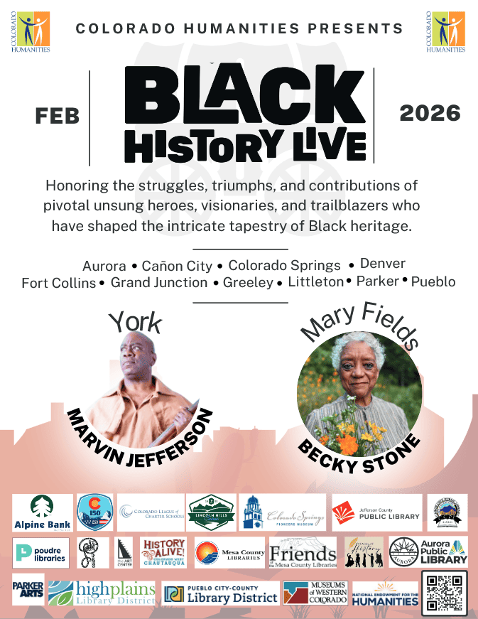 Each February, Colorado Humanities’ Black History Live program honors the struggles, triumphs, and contributions of pivotal unsung heroes, visionaries, and trailblazers who have shaped the intricate tapestry of Black heritage.