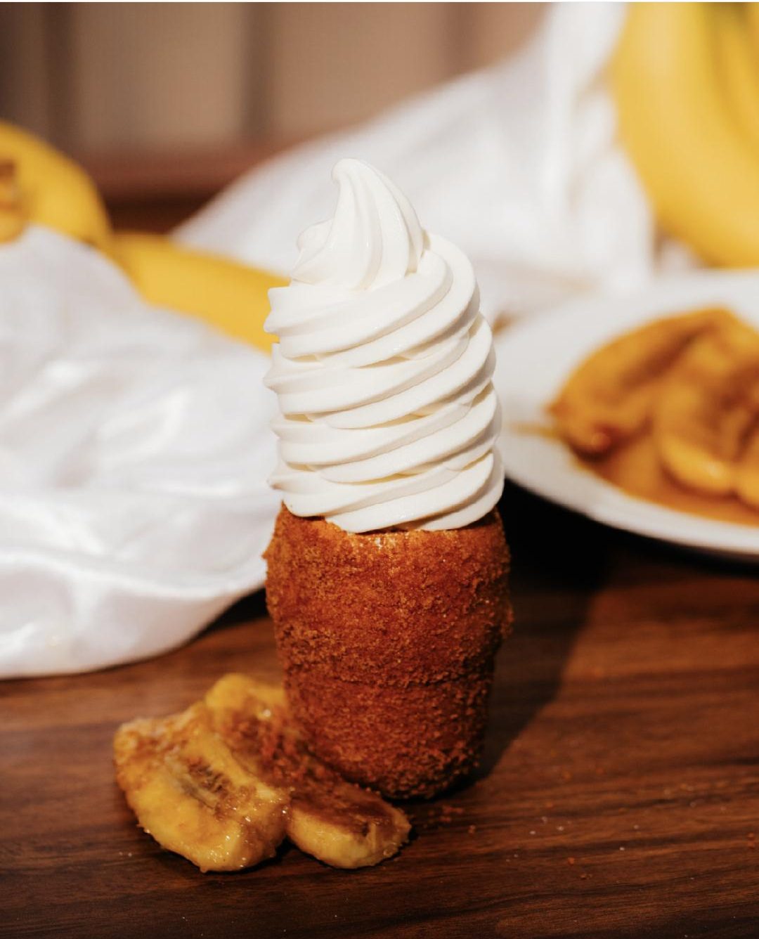 The cone is filled with a choice of spread, gourmet soft-serve ice cream, fruit and/or a variety of toppings — with rotating flavors every week.