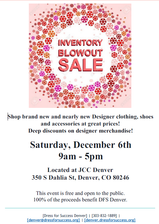 Dress for Success Denver is holding a one-day only Winter Blowout Sale on Saturday, December 6, 2025. Donated items from local retailers are discounted by up to 75% off and range from $2 to $50. You’ll find new and near-new boutique-quality clothing (St. John, Escada, Micheal Kors, Eileen Fisher, Coach, Cole Haan, DKNY, Dior, Calvin Klein, Diane Von Furstenberg, Escada and more), shoes, boots, handbags and accessories.