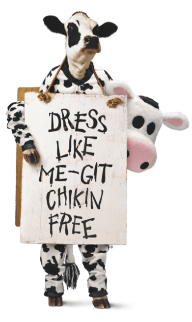 Anyone wearing anything cow-like will receive a FREE entrée. Kids dressed like a cow may choose a Kid’s Meal. It’s a day to show your love for our bovine friends and “eat more chikin.”