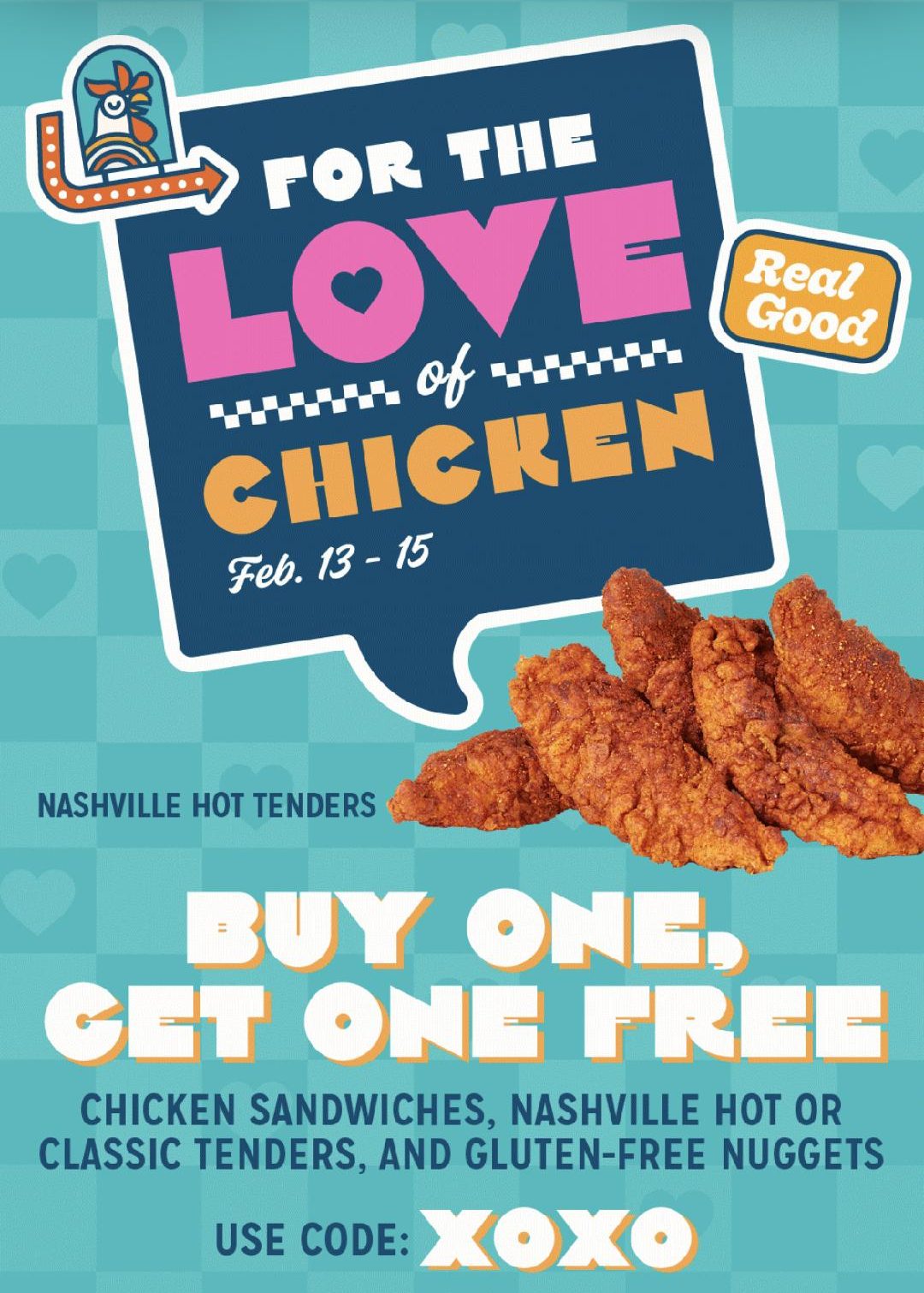 The deal applies to Chicken Sandwiches, Original Tenders and Nashville Hot Tenders. The Spicy SzechYaun Chicken Sandwich is excluded from the offer.