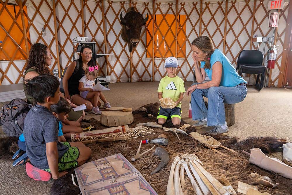 Special programming includes wagon rides to the prairie and sod homestead (weather permitting). Explore the nature center, authentic Cheyenne camp with tipis, sod houses, blacksmith shop and one-room school house.