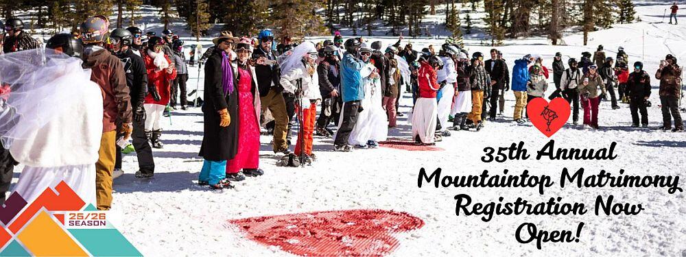 The Annual Valentine’s Day Marry Me & Ski for Free Mountaintop Matrimony wedding ceremony and reception at the Loveland ski area on Saturday, February 14, 2025, is a Colorado tradition, now in its 35th year. Couples with valid Colorado marriage licenses are legally joined in matrimony and already-married couples may renew their vows.