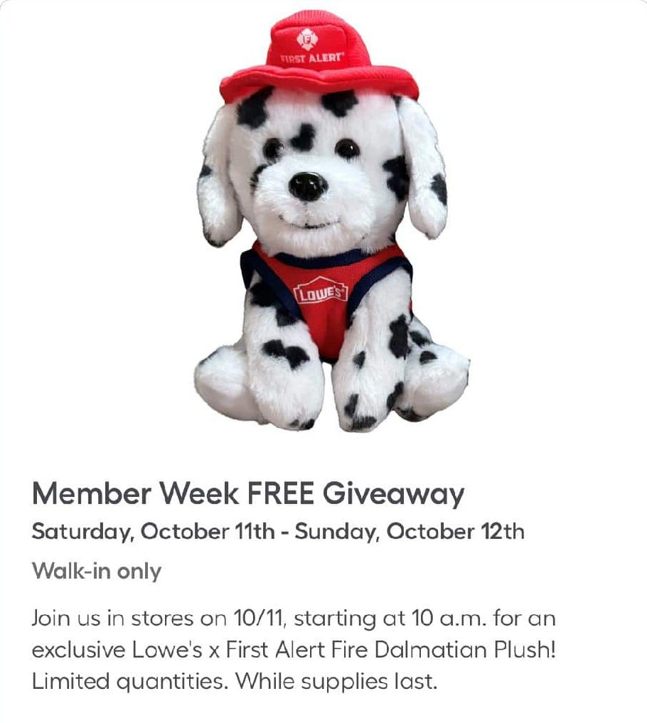 On October 11, 2025, Lowe’s is reminding families about the importance of fire safety by giving away a FREE exclusive Lowe’s x First Alert Fire Dalmatian Plush at every location, while supplies last — starting at 10 a.m. No purchase necessary. It’s important for every home to be prepared with smoke alarms and Lowe’s has partnered with First Alert for this special giveaway.