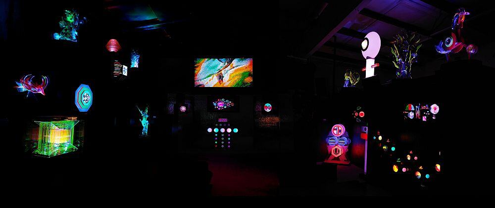 Imagine stepping into a world where glowing light sculptures, video art projection, and music converge to relax your body and engage your mind and emotions. The Lumonics team has transformed a Denver warehouse into an intimate artistic setting. More than 75 light sculptures, in rotation from a collection of over 200 works, are on display and part of the immersive experience presented on Fridays and Saturdays at 8 pm. Each performance is new and orchestrated live.
