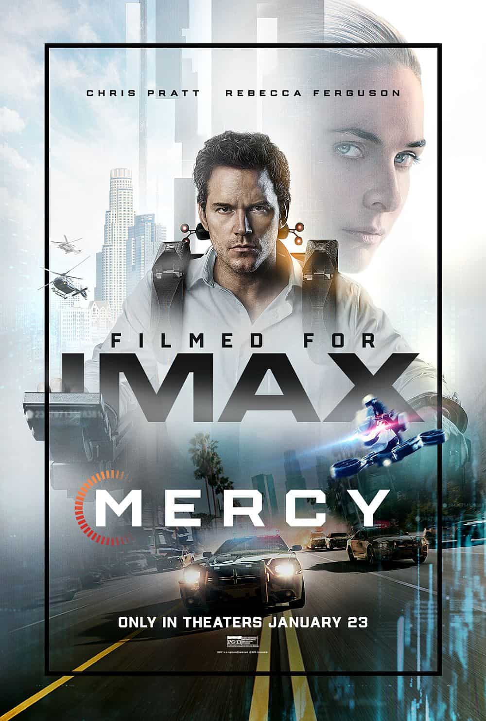 In the new sci-fi thriller Mercy, in the near future, a detective (Chris Pratt) stands on trial accused of murdering his wife. He has 90 minutes to prove his innocence to the advanced A.I. Judge (Rebecca Ferguson) he once championed, before it determines his fate. If he fails, he’ll be executed on the spot.