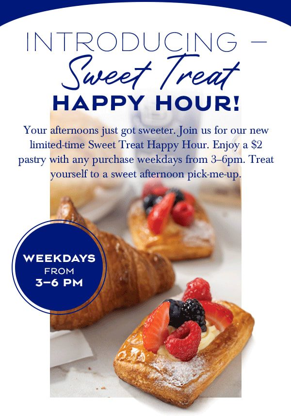 Mobile and online orders must be placed during the Sweet Treat Happy Hour window. Purchase must be complete by 5:59 p.m.