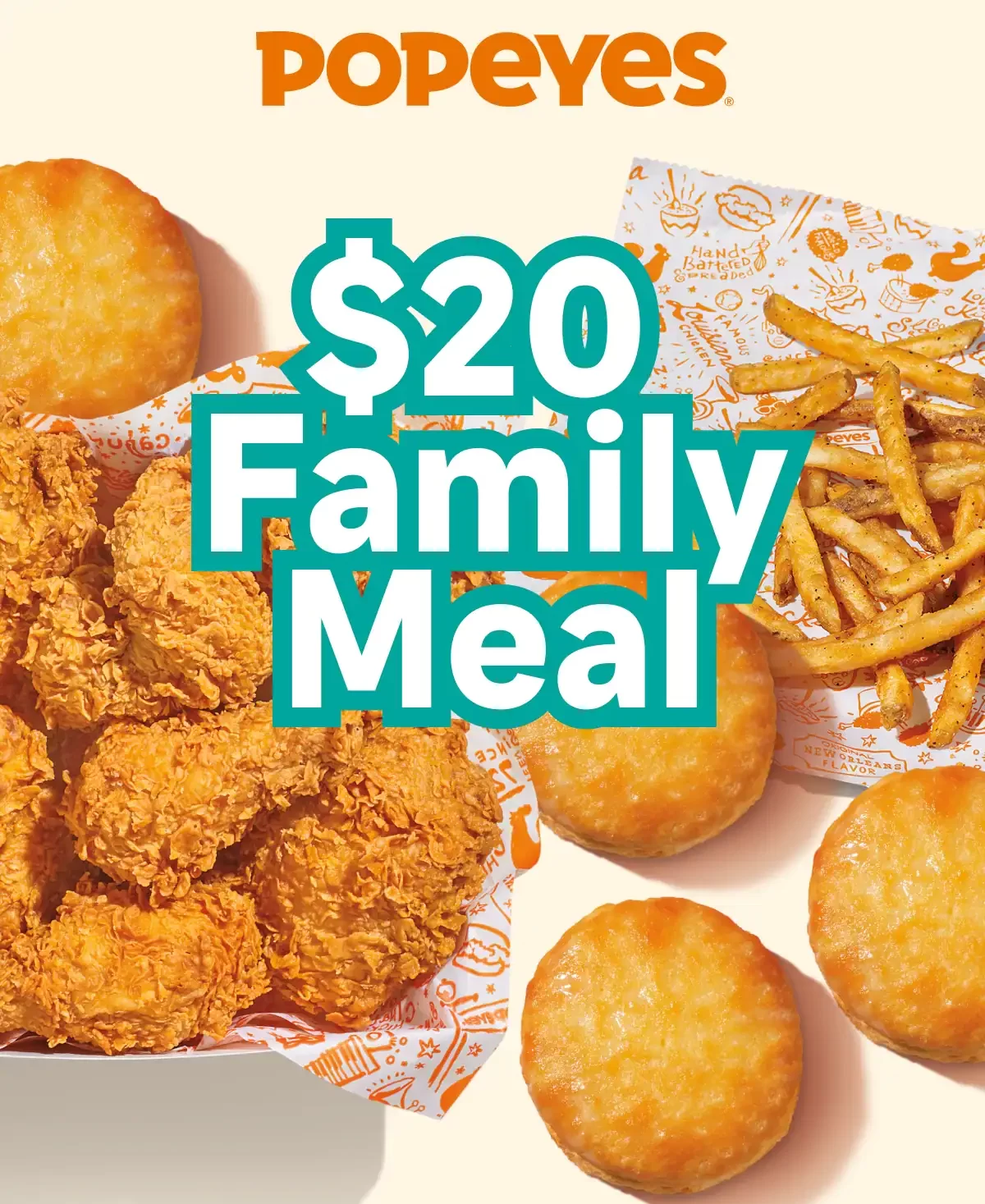 What’s for dinner, you ask? Popeyes is offering busy, frugal families a break from cooking and a chance to save money on dining out. Through December 31, 2026, customers can dig into the restaurant’s popular $20 Family Meal — a family feast that brings big value and zero prep straight to the dining table.