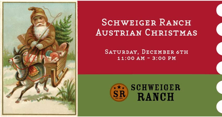 Schweiger Ranch is pulling out all the stops for its annual authentic Schweiger Ranch Austrian Christmas event on Saturday, December 6, 2025, from 11 a.m. to 3 p.m. In Austria, Christmas is a time of reflection and gathering with friends and family. Bring the family to see Santa and his reindeer, enjoy Austrian food and beverages and other activities for children and adults.