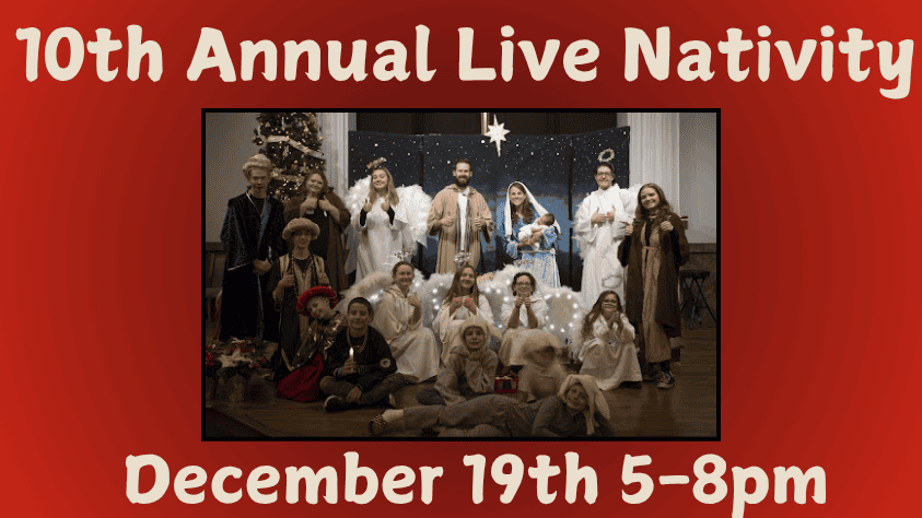 The Nativity story comes to life at Risen Savior Lutheran Church on Friday, December 19, 2025. Actors and live animals are part of the FREE performances given at 5:15 p.m., 6:15 p.m and 7:15 p.m. The Nativity story will be told and Christmas songs sung by church youth. Enjoy both outdoor and indoor events, plus free hot drinks and cookies.
