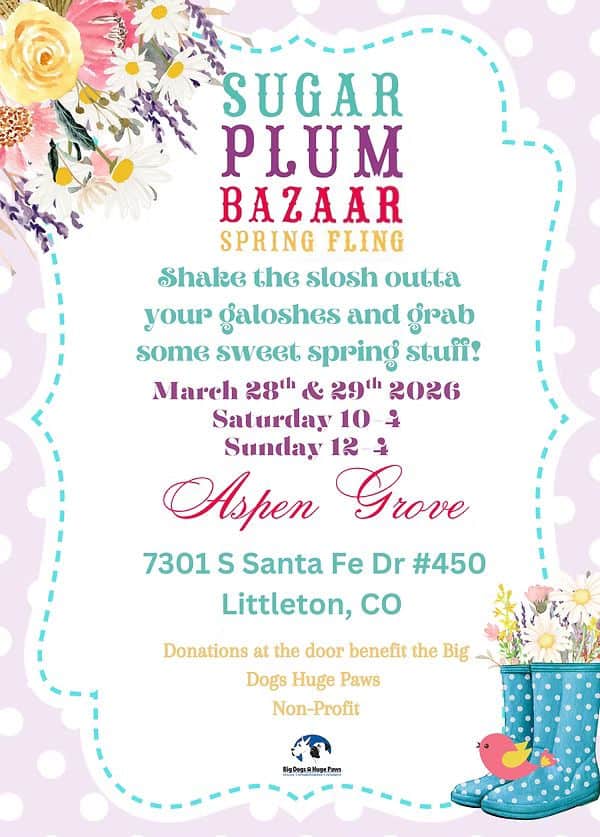 Just in time for Easter and Mother’s Day and all those other special occasions where you need a unique gift, comes the Sugar Plum Bazaar Spring Fling. The FREE event is Saturday & Sunday, March 28 & 29, 2026, at Aspen Grove in Unit 450. Hours are 10 a.m. to 4 p.m. on Saturday and 12 p.m. to 4 p.m. on Sunday.